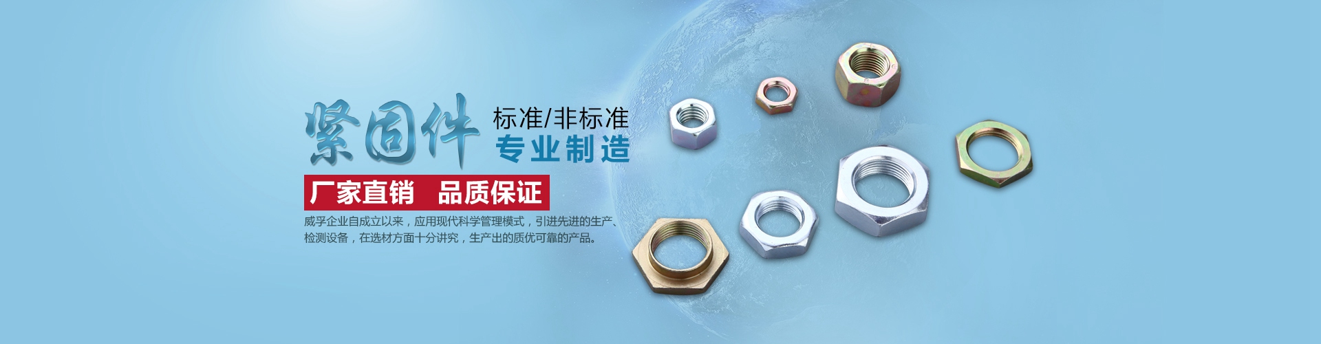 瑞安市威孚標準件有限公司企業創辦于1994年,是一家專業生產及加工標準件、高強度緊固件的廠家。主要的產品有防松螺母、鎖緊螺母、六角螺母、法蘭螺母、半圓鍵、尼龍防松螺母、自鎖螺母等。常見的其他附件有:螺絲、螺釘、墊圈、彈簧、墊片、連接件、彈墊、高強度螺栓。防松螺母的表面采用鍍鋅工藝,緊固功能強大,方便拆卸,固定好了就不會松動。我們的緊固件擁有高強度的連接方法,緊固的結構合理。標準件,采用新型的工藝及不銹鋼的材質,標準的規格,類型很多,非常實用。我們的防松螺母、鎖緊螺母等產品支持定制,適用于:裝修、機械等生活及工作上、產品不僅質量可靠,我們還提供了售前售后的服務,為您解決相關緊固件產品問題。