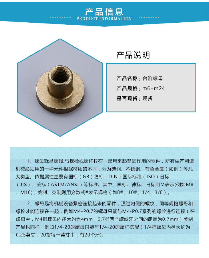 臺階螺母聯接在裝配時都必須擰緊,使聯接件在承受工作載荷之前,預先受到力的作用。這個預加作用力稱為預緊力,即法蘭螺栓的軸向力。預緊的目的在于增強聯接的可靠性和緊密性,以防止受載后被聯接件問出現縫隙或相對滑移。經驗證明:適當選用較大的預緊力對螺紋聯接的可靠性以及聯接件的疲勞強度都是有利的。